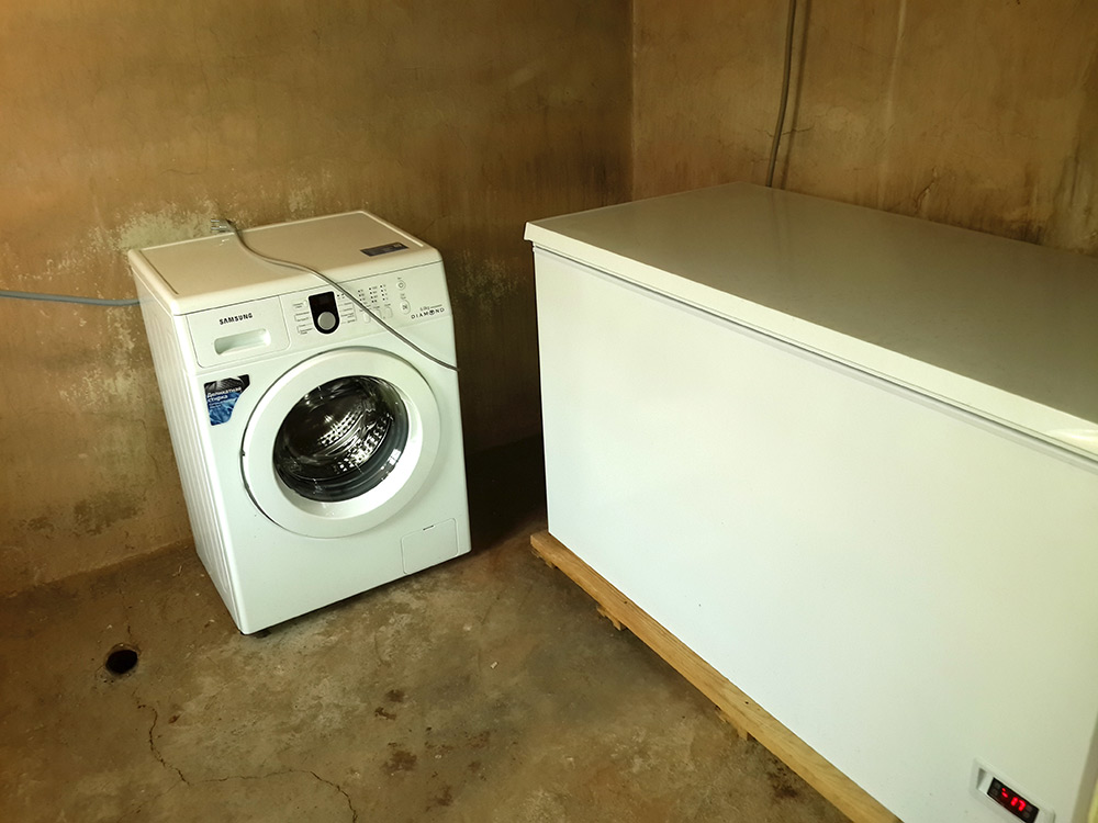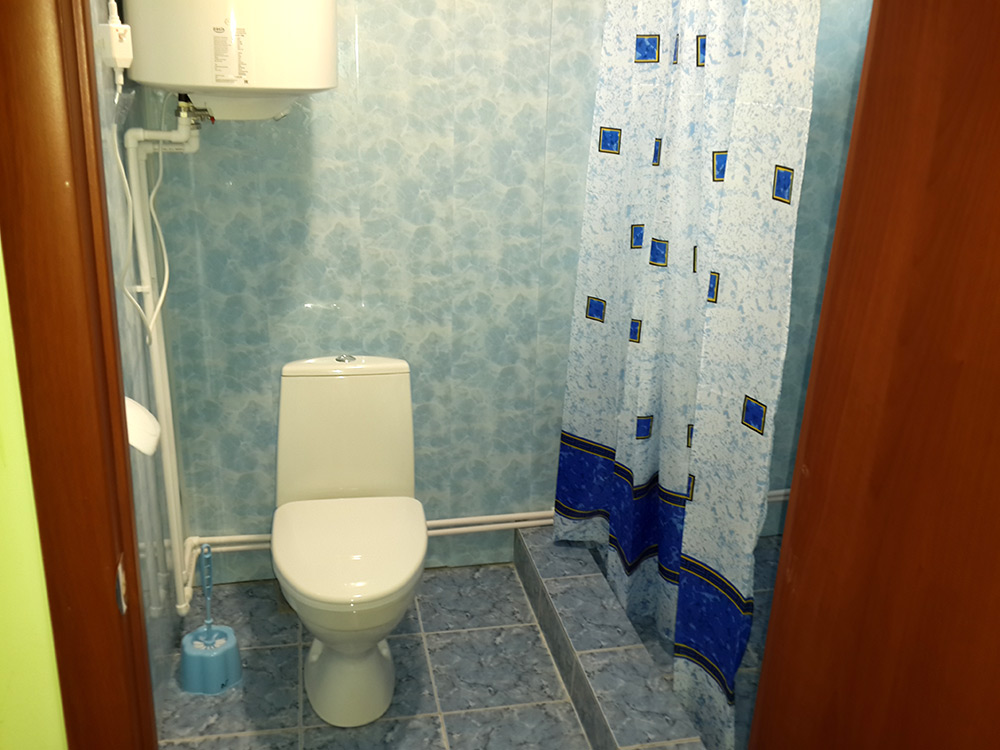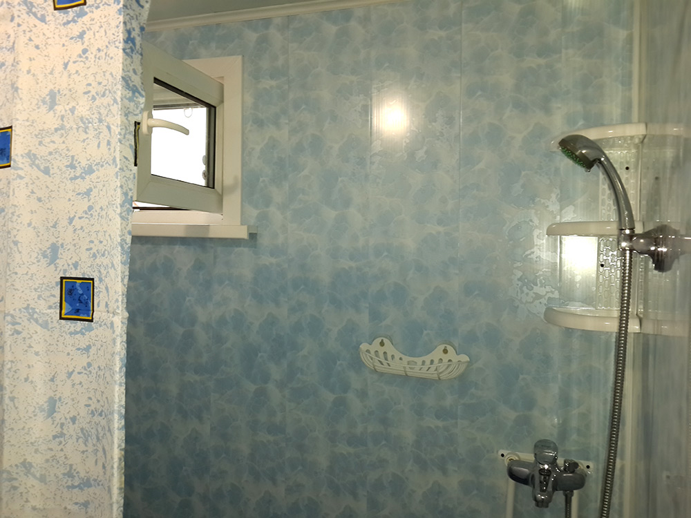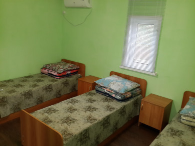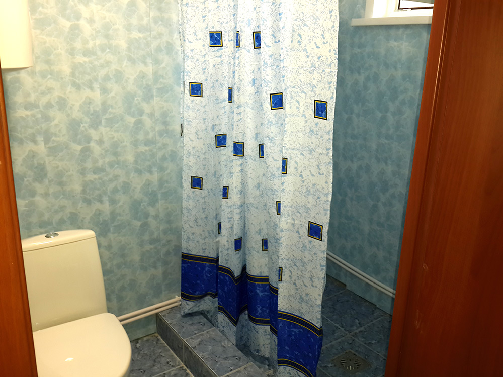 Одна спальня (3 кровати), кухня (газовая плита, посуда, холодильник), душевая, санузел.